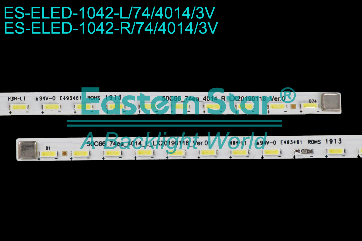 ES-ELED-1042 ELED/EDGE TV backlight use for 50'' Tcl 50Q6 50C66 TCL_50C66_74ea_4014_L_LX20190118_Ver.0, TCL_50C66_74ea_4014_R_LX20190118_Ver.0, 68-758030-3BE, YHA-4C-LB5074-YH03L-200419-3B111-01669, YHA-4C-LB5074-YH04L-200419-3B111-01535 LED BACKLIGHT STRIP(2)